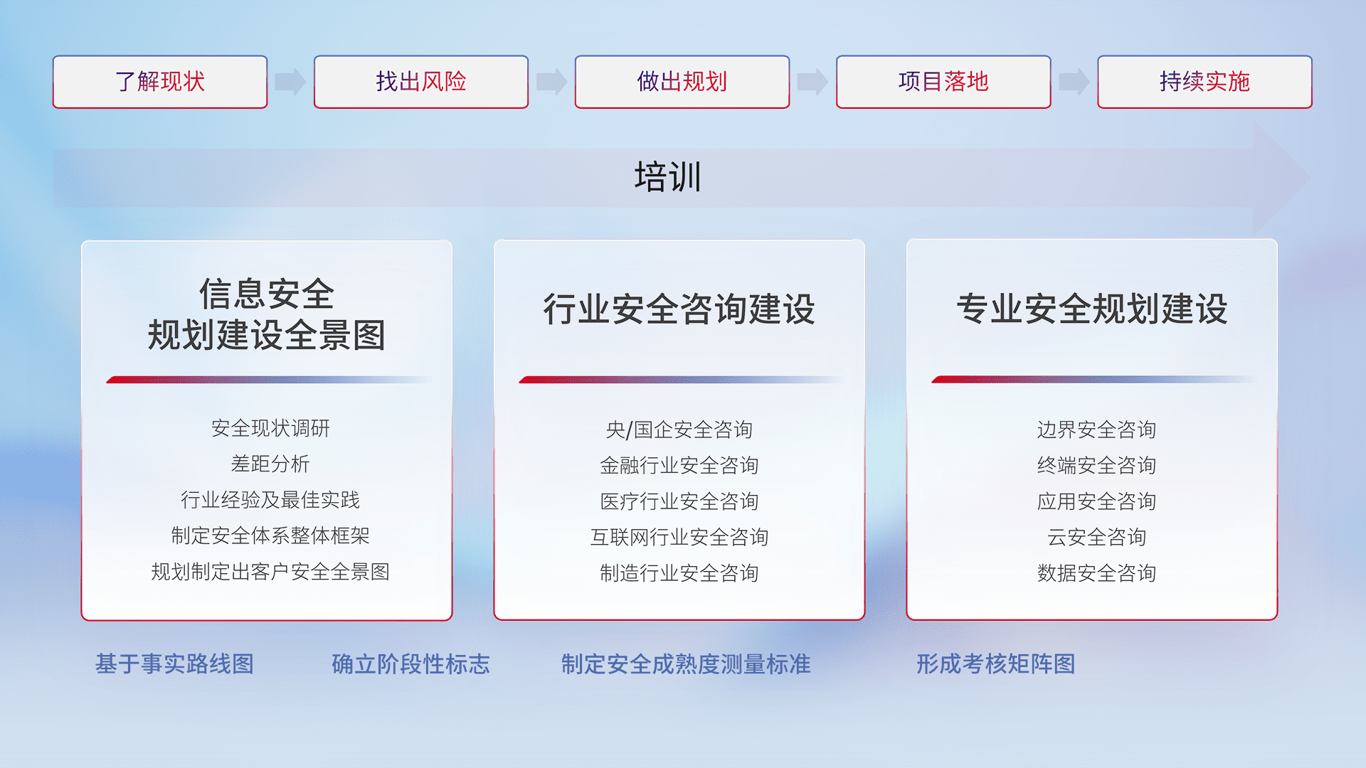 梳理客户信息安全现状调研、、差距分析结果,,,,结合行业先进经验及最佳实践,,制订客户的信息安全管控体系总结架构,,,最终形成一个完整的客户信息安全规划与建设的全景图。。。