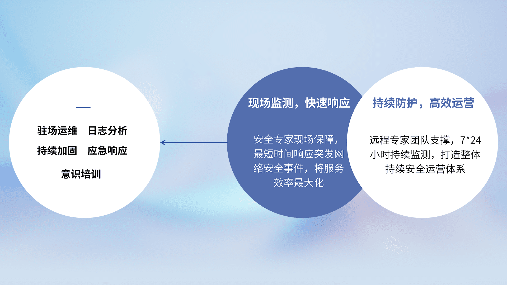 针对客户行业特性,,,提供专属的一站式安全管理服务,,帮助客户全面感知网络空间威胁,,,,通过安全专家的线上、、、线下防护支持,,,实现风险闭环,,,将安全保障常态化,,为客户打造常态化安全运维运营服务。。
